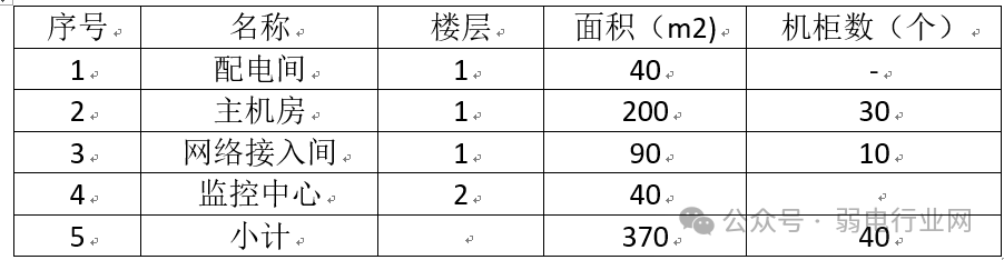 (三)各主要模块功能设计说明1、机房、配电房场地改造根据平面布局图,本次项目建设场地范围为:监控中心、主机房、配电间、IT设备间,共规划建设面积约为370㎡,安装数据机柜26个,网络机柜4个。机房各功能间如下表所示: