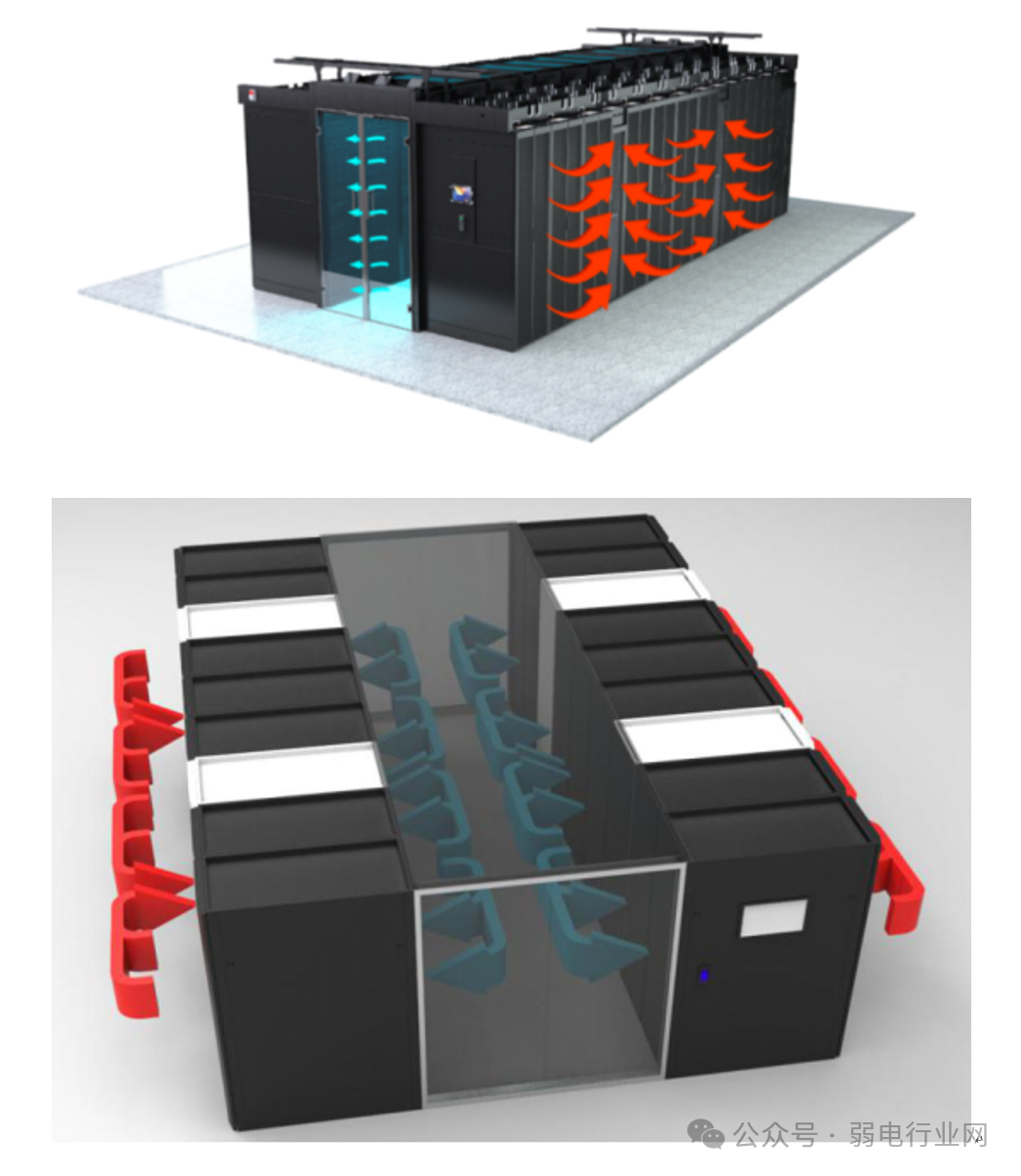 (3)对数据中心资产进行全生命周期的资产管理,根据机房设备设施信息建立机房容量管理,全面呈现及分析数据中心能耗分布情况。微模块示图: